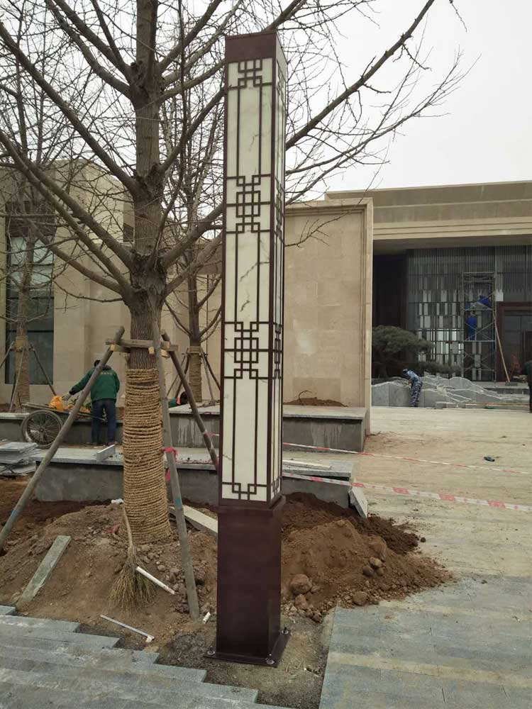 寶雞花旗集團(tuán)庭院方燈,該項(xiàng)目主要采用的是我公司自己設(shè)計(jì)生產(chǎn)的庭院燈、草坪燈。顏色外觀采用激光切割板材與亞克力板組成,造型簡單大方,顏色深淺搭配柔和,夜間亮燈,散發(fā)出暖色燈光。