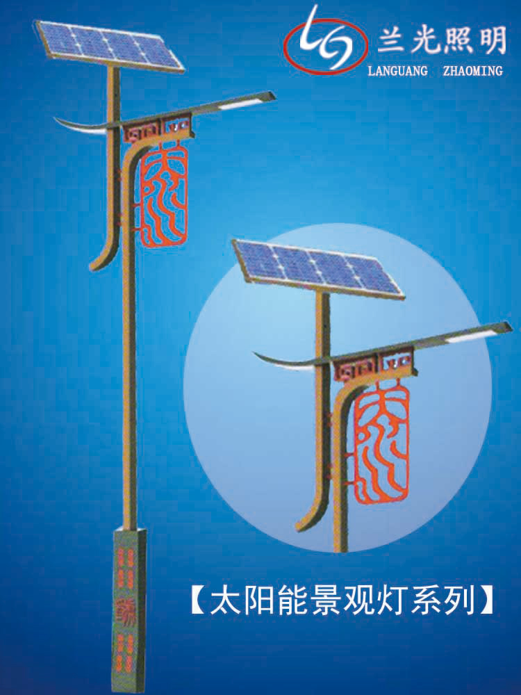簡(jiǎn)介—— 蘭光照明太陽(yáng)能景觀燈是城市園林景區(qū)、文化休閑娛樂(lè)廣場(chǎng)及大型社會(huì)活動(dòng)場(chǎng)所普遍使用卻必不可少的裝飾光源配置形式。是裝飾型照明燈飾產(chǎn)品,燈桿材質(zhì)多樣,光源運(yùn)用靈活多變,聲、光、電三位一體,結(jié)構(gòu)形式千姿百態(tài),是美化,亮化,綠化有機(jī)結(jié)合,光與影,燈與藝術(shù)的完美結(jié)晶。