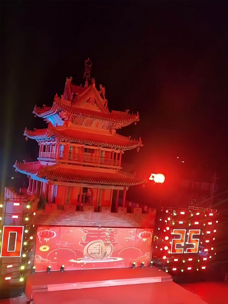 簡(jiǎn)介—— 隰縣鼓樓又稱大觀樓,位于縣城正中心,是全國(guó)現(xiàn)存的20多處明代鼓樓中的一座。它位于縣城正中心,占地196平方米,通高約27米,磚拱門洞,十字貫通,至今已有390多年的歷史,是隰縣的象征。2025我司對(duì)鼓樓做了整體的亮化工程,采用大功率投光燈,在鼓勵(lì)的四角確定安裝機(jī)位,對(duì)鼓樓進(jìn)項(xiàng)了整體的打亮,不但很好的保護(hù)鼓樓外立面不被破