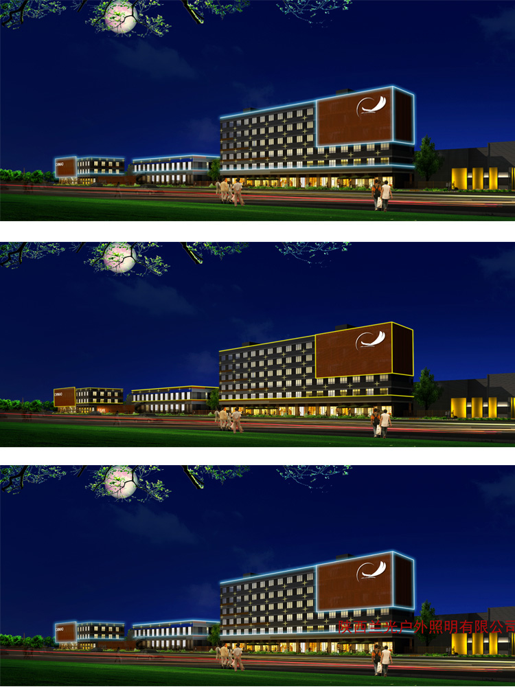菜鳥亮化項(xiàng)目是我公司和阿里巴巴西安菜鳥公司溝通,做的初步設(shè)計效果圖,結(jié)合菜鳥配送中心的功能性,在主樓體做發(fā)光亮化效果,主要采用線條燈勾勒,點(diǎn)光源點(diǎn)綴效果,到達(dá)客戶需求的亮化效果。