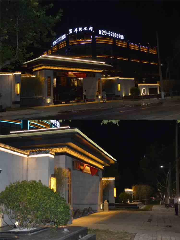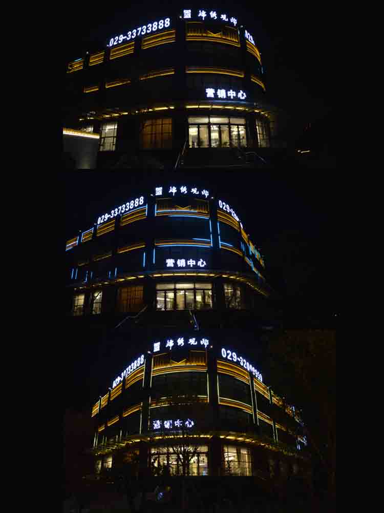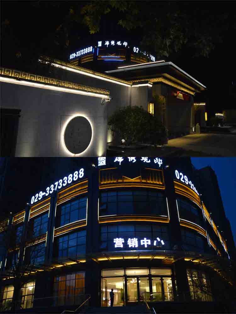 2018 榮盛景秀觀邸售樓部亮化,蘭光設(shè)計師根據(jù)其榮盛景秀觀邸售樓部商業(yè)屬性,商業(yè)照明設(shè)計明亮而醒目,營造商業(yè)經(jīng)營的夜景氛圍。以靜態(tài)的暖色燈光將其打亮,凸顯雅致?!皹s盛景秀觀邸”標(biāo)志以高亮度的燈光,吸引顧客注意,增強商業(yè)宣傳力度。景觀燈造型與建筑外立面造型完美融合,晚上光斑效果與綠植景觀交相輝映,相映成趣!榮盛景秀觀邸的亮化設(shè)計施工,獲得了客戶的高度認(rèn)可。