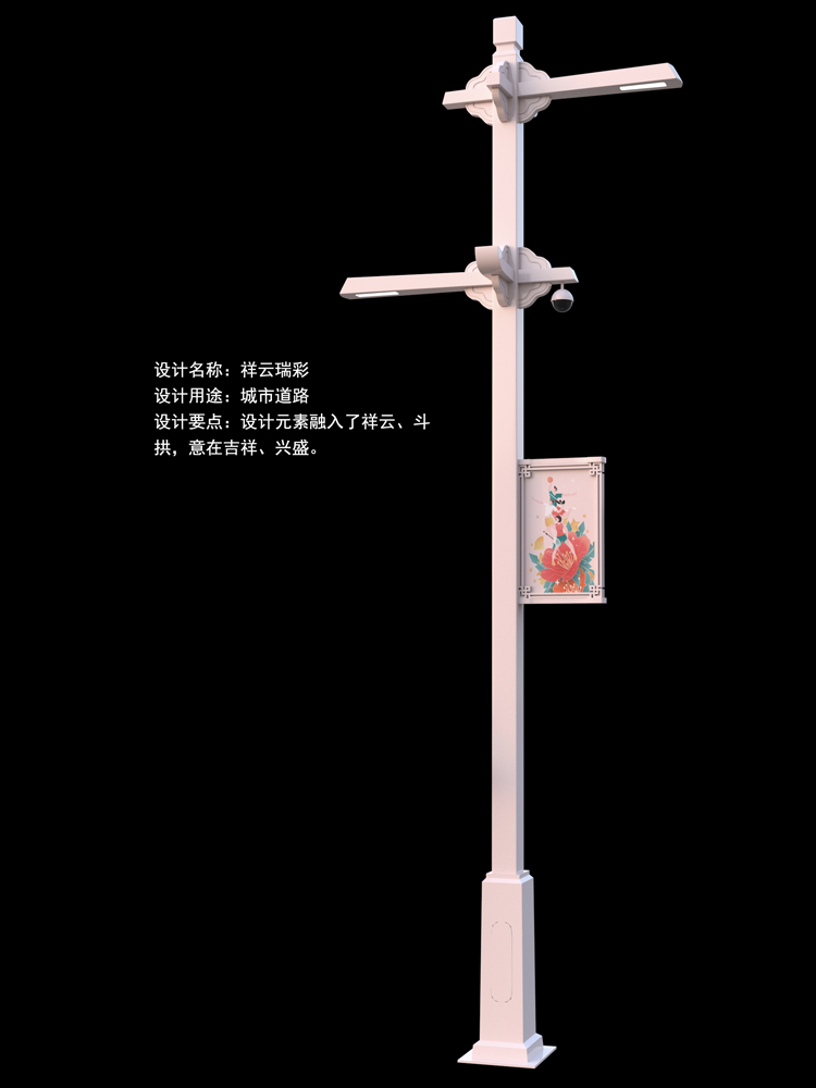 設(shè)計(jì)要點(diǎn):此燈具借鑒古建筑馬頭墻的造型,頭部采用經(jīng)典曲線,中部采用祥云圖案裝飾,下部采用精致曲度造型,整體優(yōu)美流暢,簡(jiǎn)而…